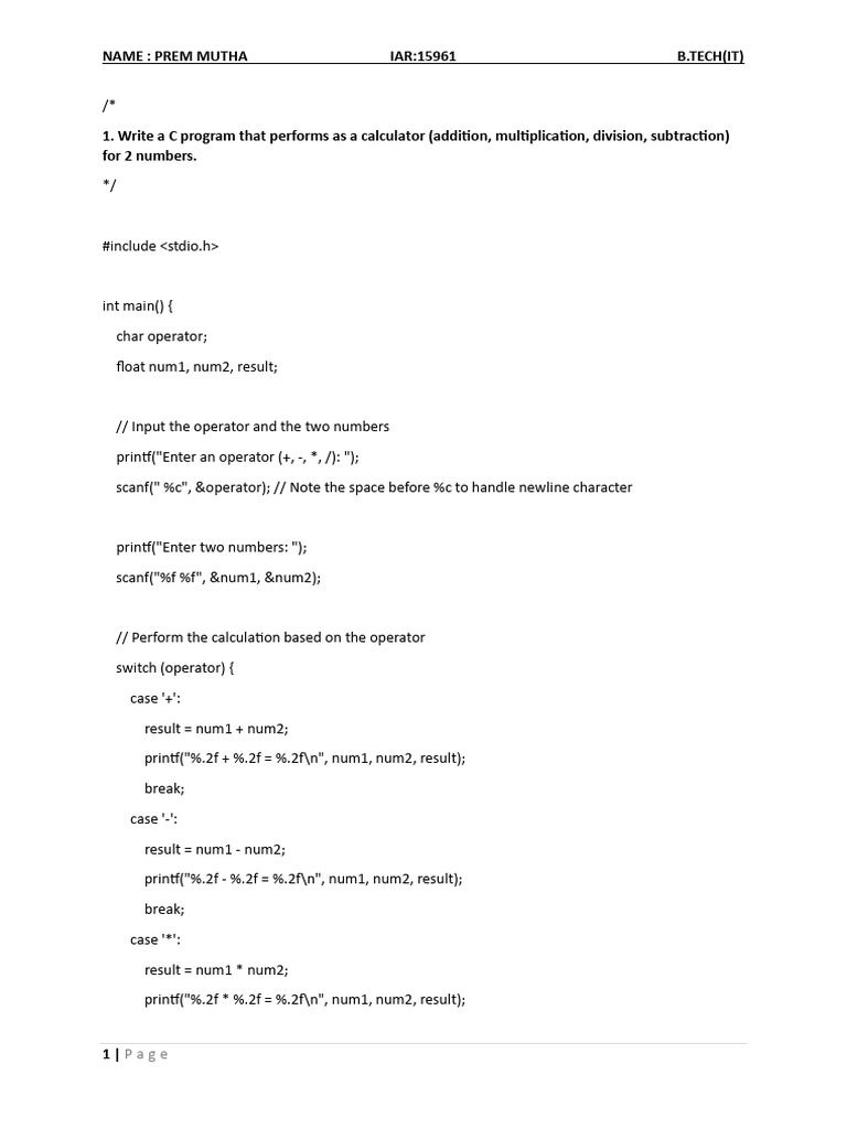 NAME : PREM MUTHA IAR:15961 B.TECH(IT)