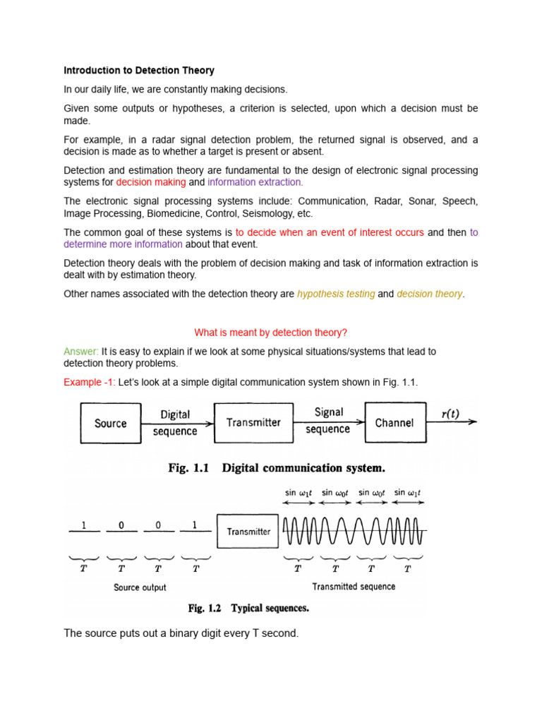 In these examples we have seen that detection theory problems are characterized by the fact