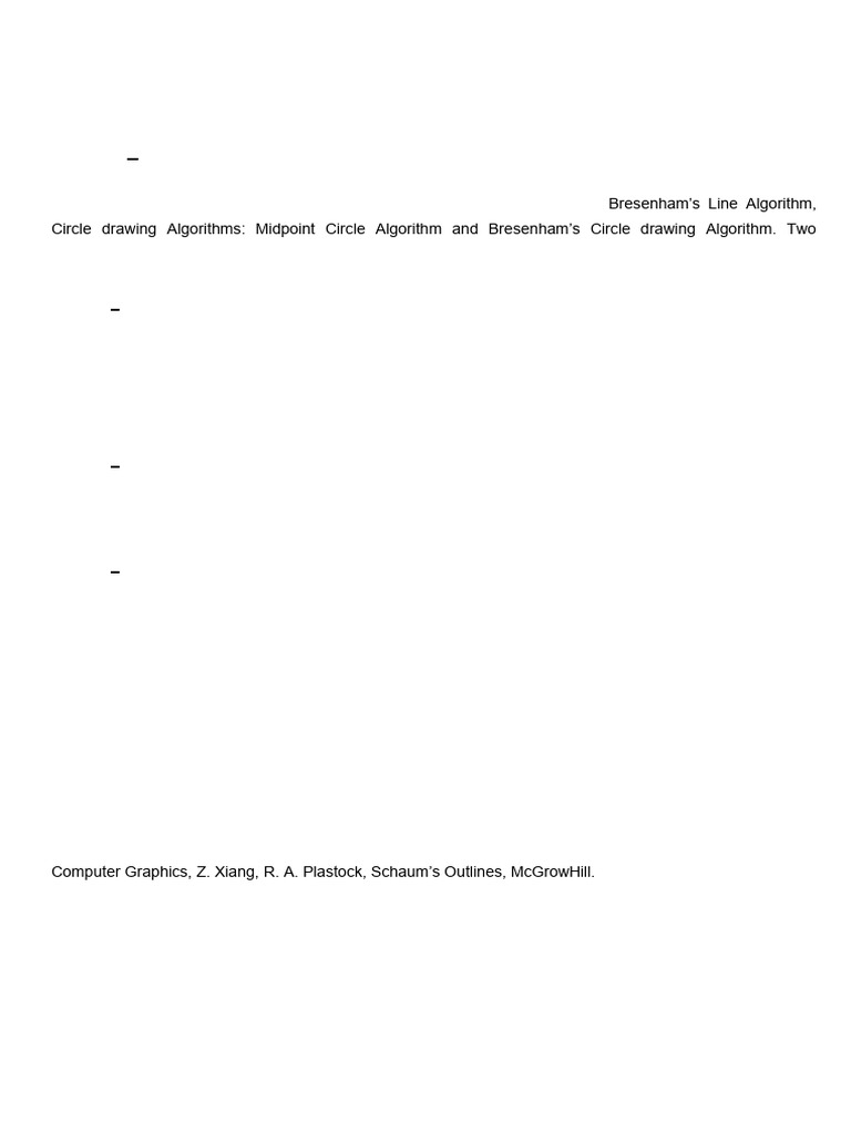 4. Computer Graphics, Z. Xiang, R. A. Plastock, Schaum’s Outlines, McGrowHill.