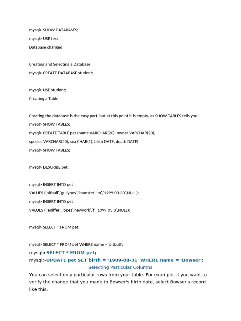mysql> SELECT * FROM pet WHERE name = 'pitbull';