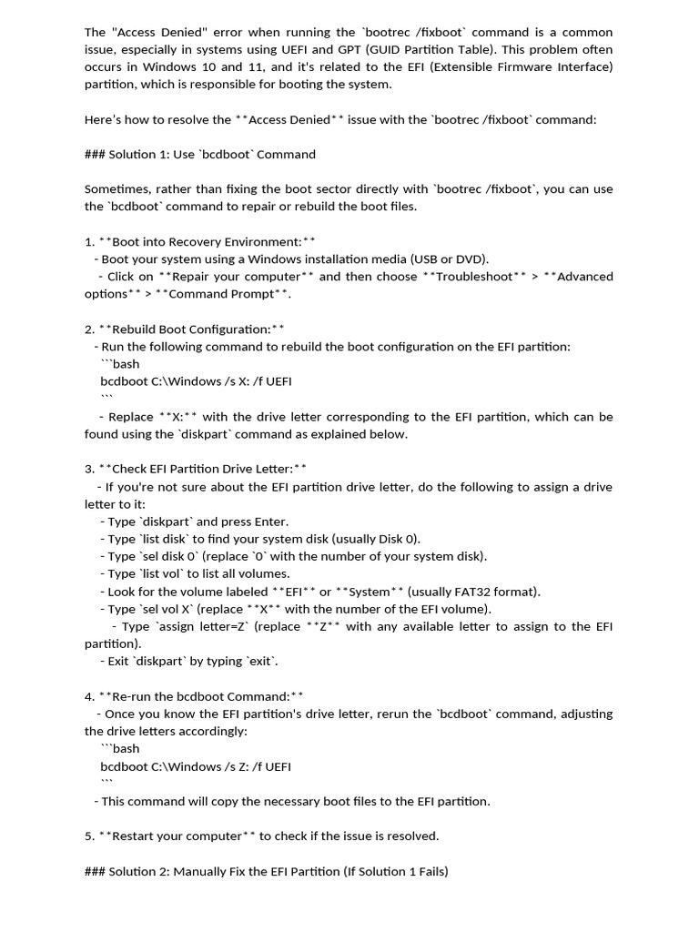 Here’s how to resolve the **Access Denied** issue with the `bootrec /fixboot` command: