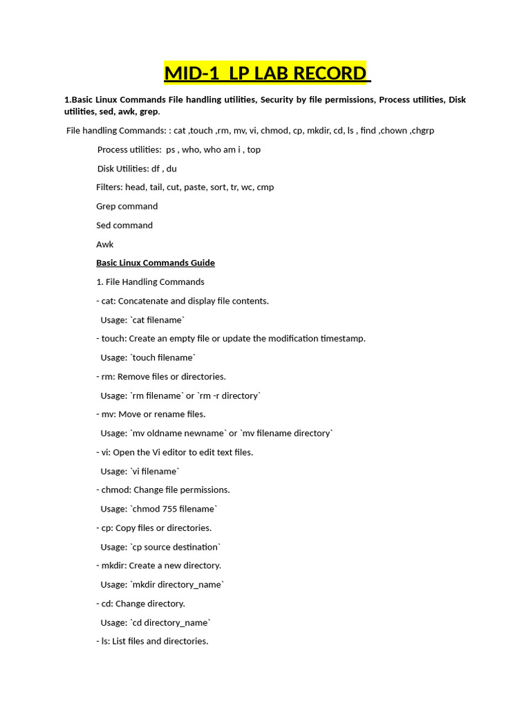 1.Basic Linux Commands File handling utilities, Security by file permissions, Process utilities, Disk