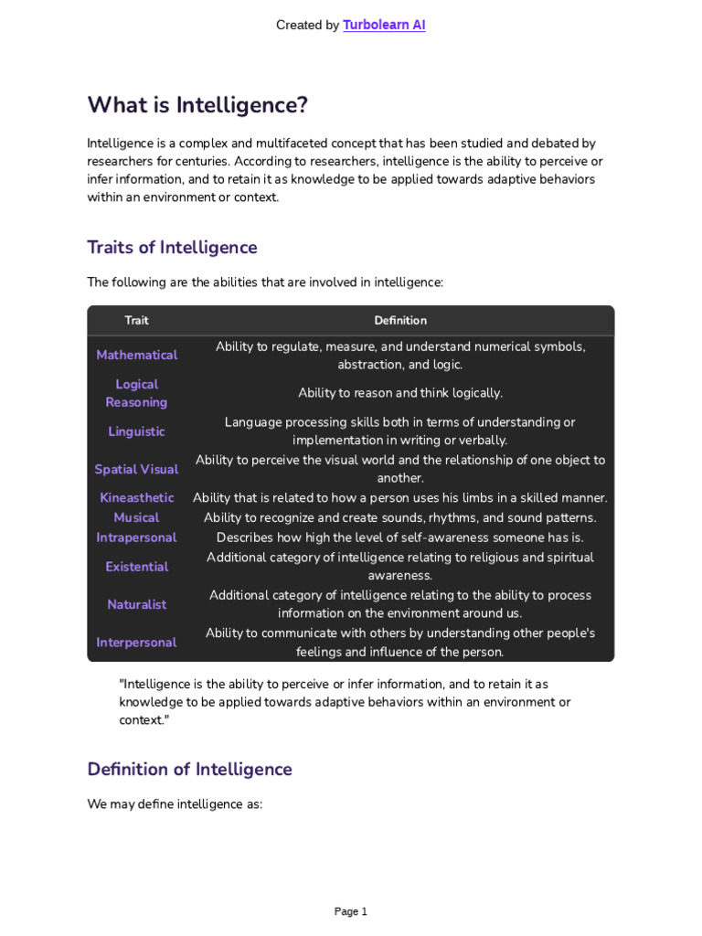 researchers for centuries. According to researchers, intelligence is the ability to perceive or