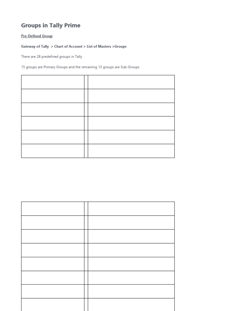 Gateway of Tally > Chart of Account > List of Masters >Groups