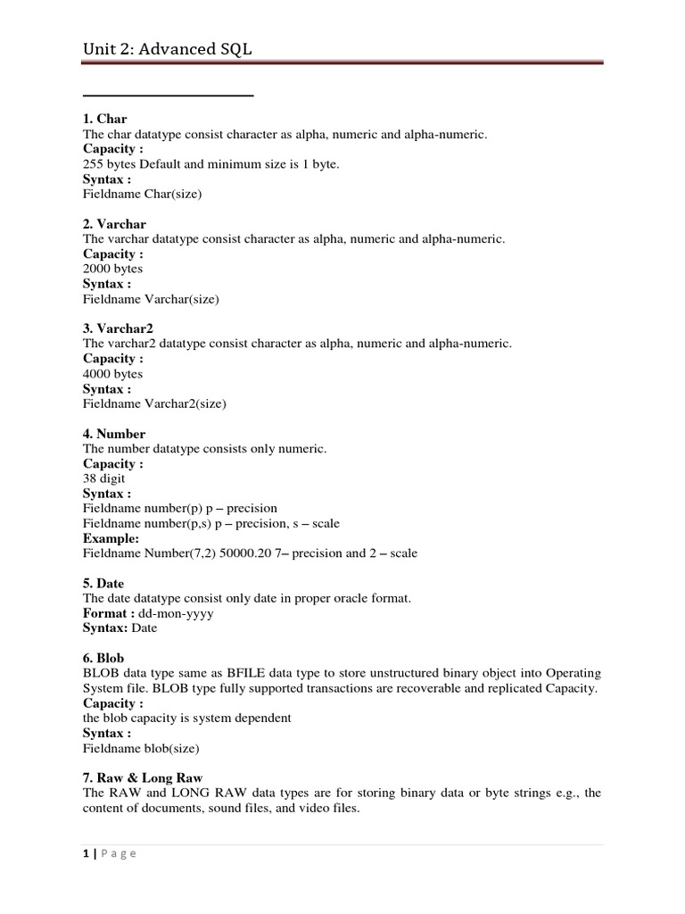 Fieldname Number(7,2) 50000.20 7– precision and 2 – scale