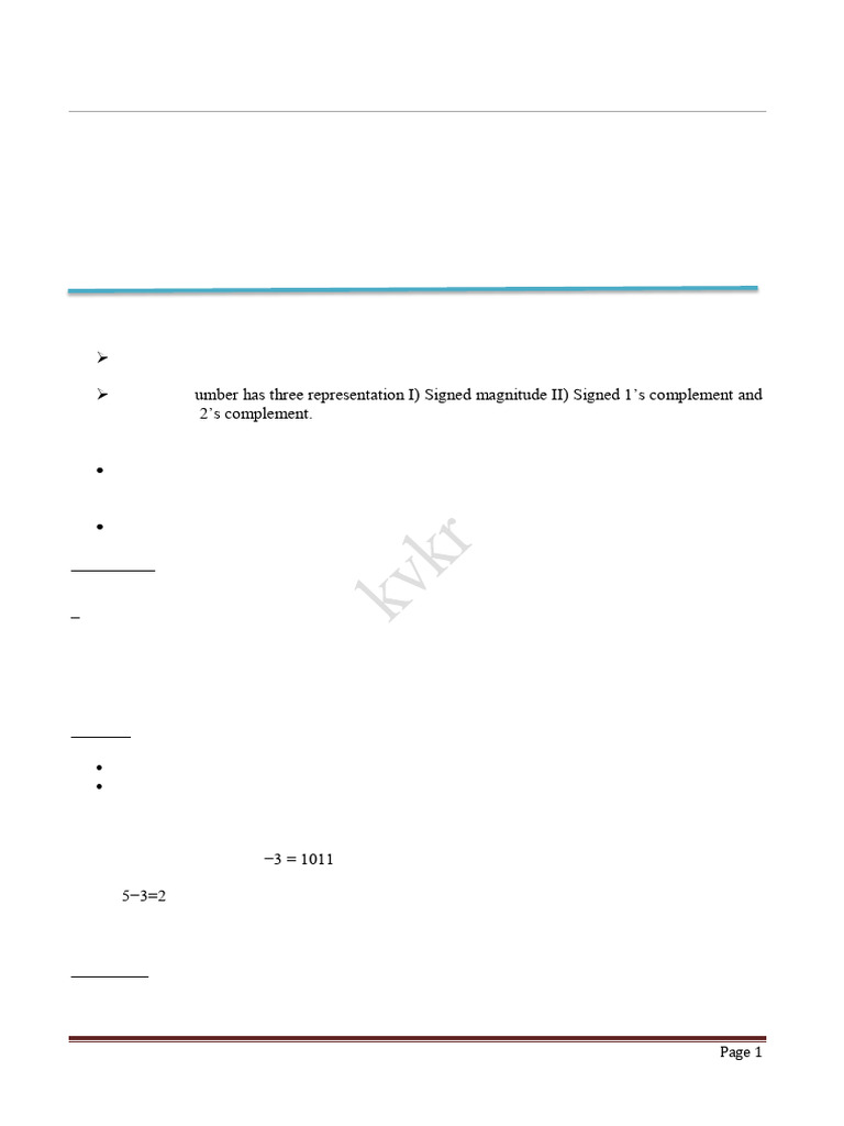A signed number has three representation I) Signed magnitude II) Signed 1’s complement and