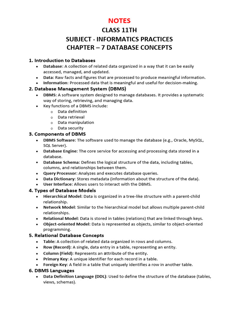 CHAPTER – 7 DATABASE CONCEPTS
