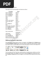 SECTION 12 ACTIVE CELL SHORTCUTS