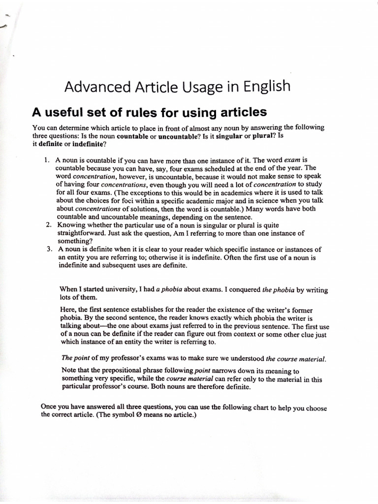 Advanced Article Usage in English