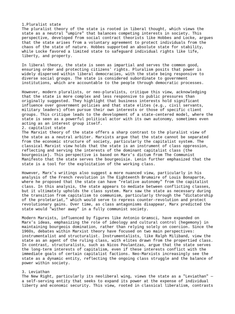 ensuring order and protecting citizens' rights. Pluralism posits that power is