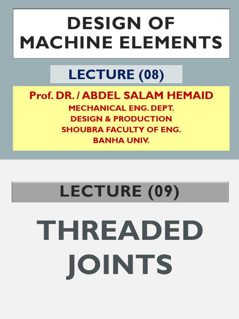 • Threaded joint is defined as a separable joint of two or more machine parts