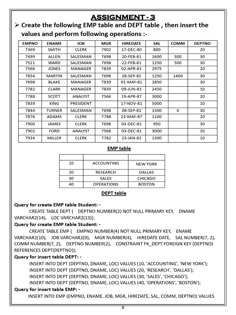 CREATE TABLE DEPT ( DEPTNO NUMBER(2) NOT NULL PRIMARY KEY, DNAME