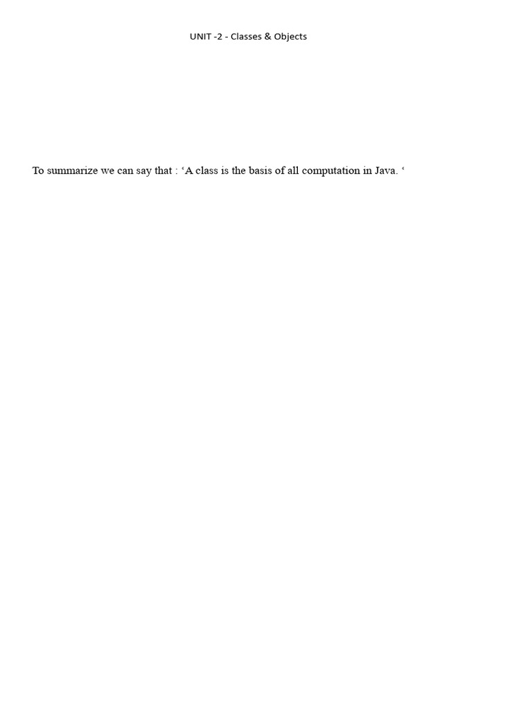 To summarize we can say that : ‘A class is the basis of all computation in Java. ‘