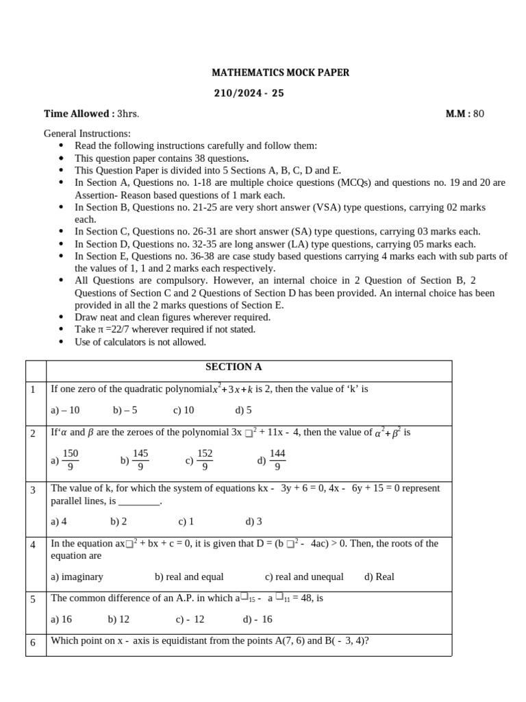 MATHEMATICS MOCK PAPER