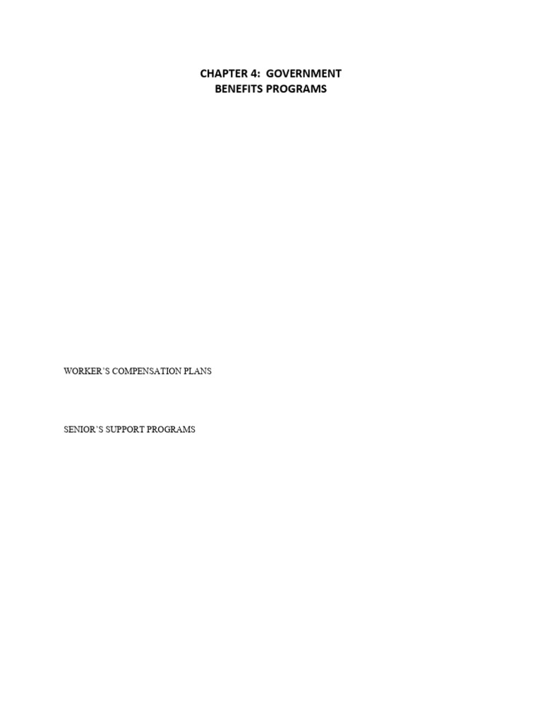 Throughout this chapter, we will examine the following benefits programs: