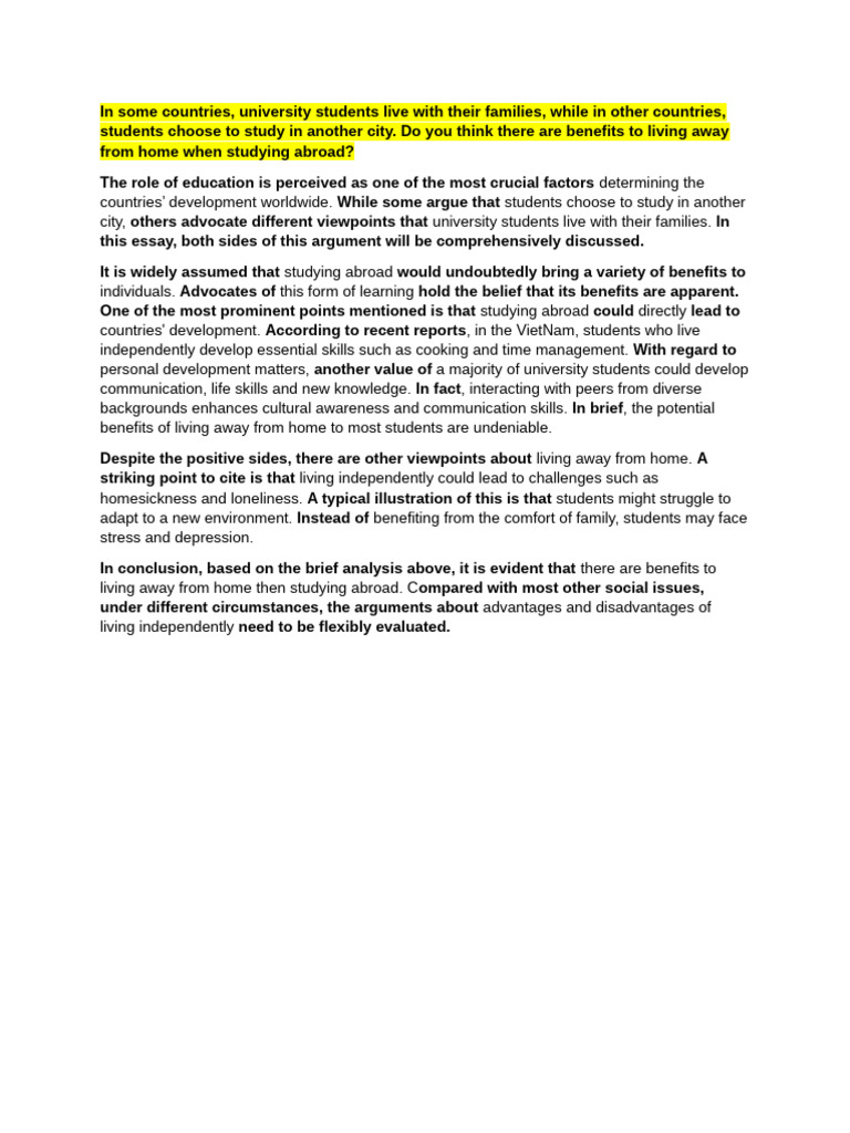 city, others advocate different viewpoints that university students live with their families. In