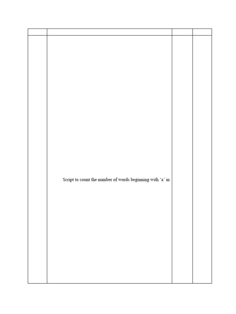 l. Script to count the number of words beginning with ‘a’ in