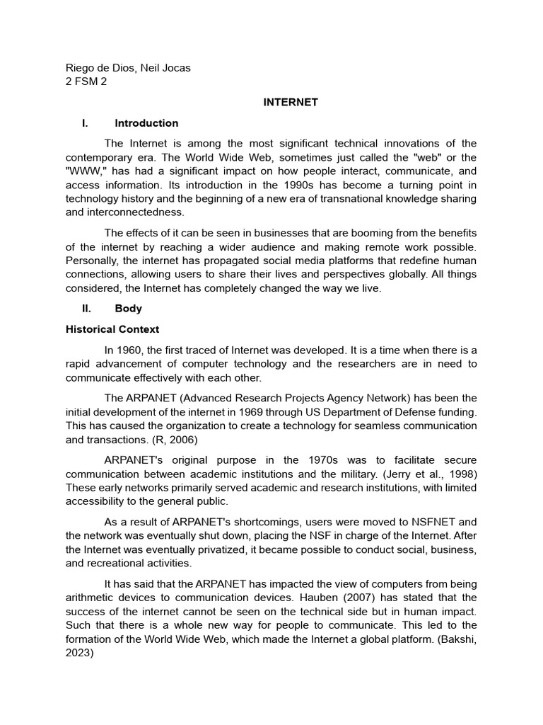 Bakshi. (2023). THE EVOLUTION OF THE INTERNET: THE ARPANET TO THE