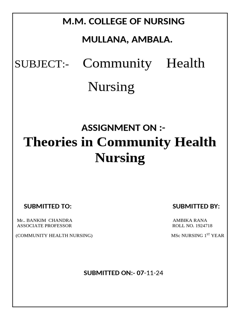 (COMMUNITY HEALTH NURSING) MSc NURSING 1ST YEAR