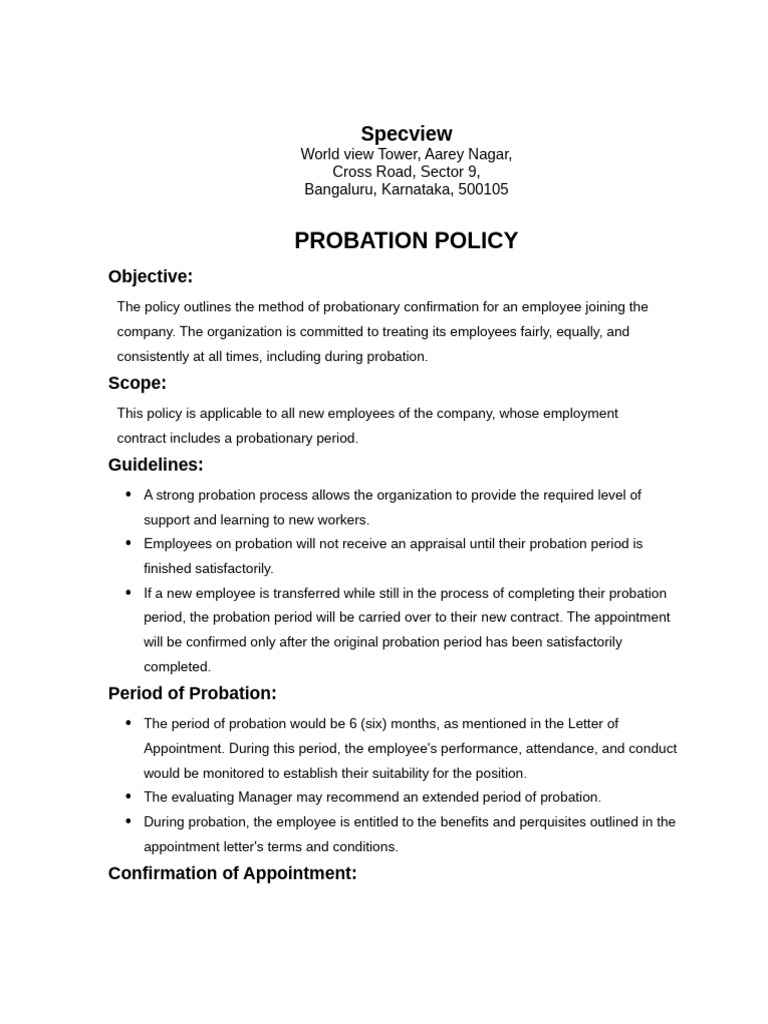 During probation, the employee is entitled to the benefits and perquisites outlined in the