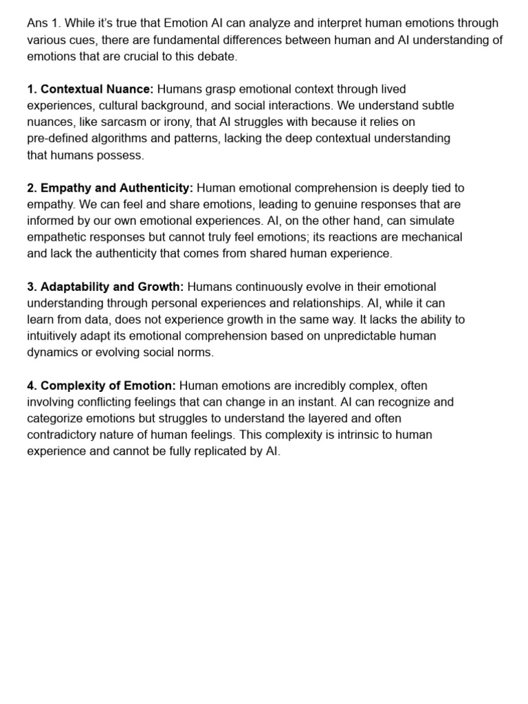 1. If AI can only recognize patterns and not truly feel emotions, how can we be