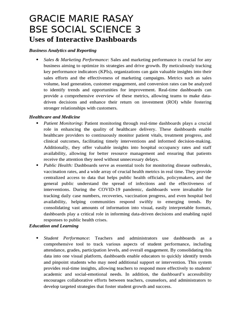 Uses of Interactive Dashboards