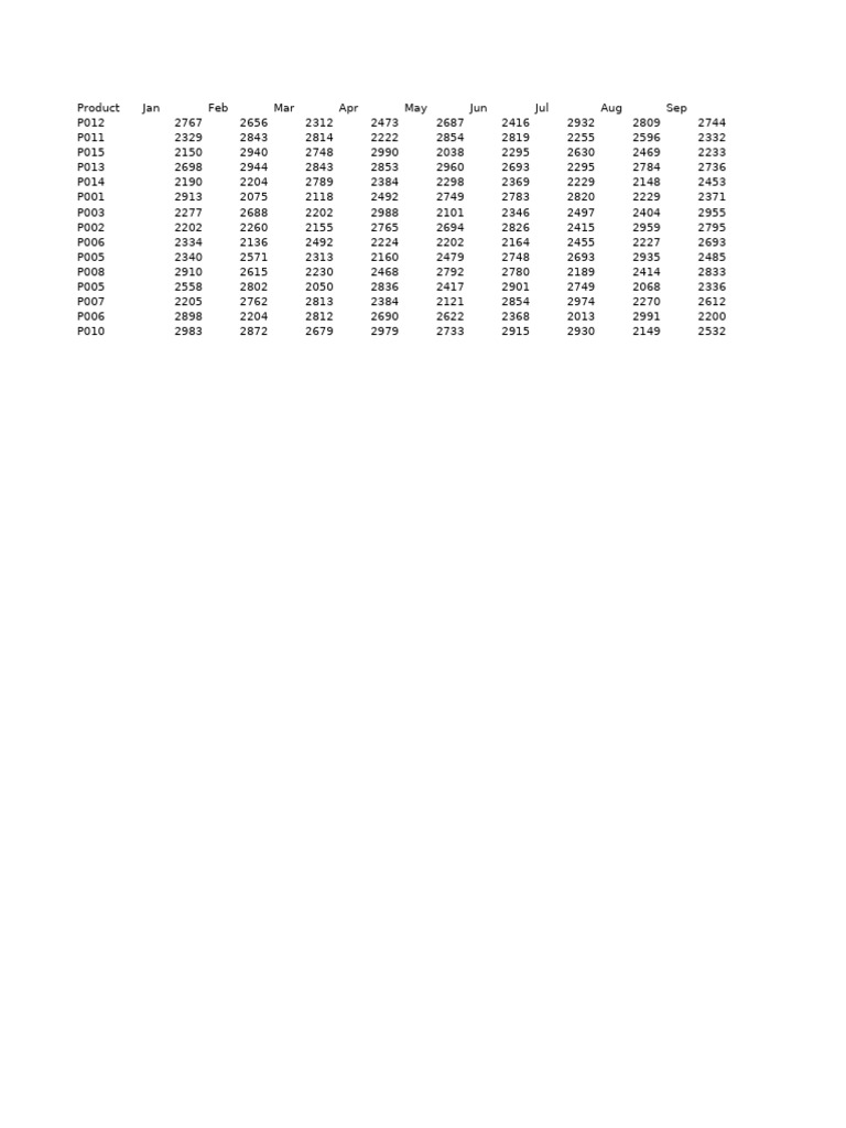 Product   Jan          Feb          Mar          Apr          May          Jun          Jul          Aug          Sep