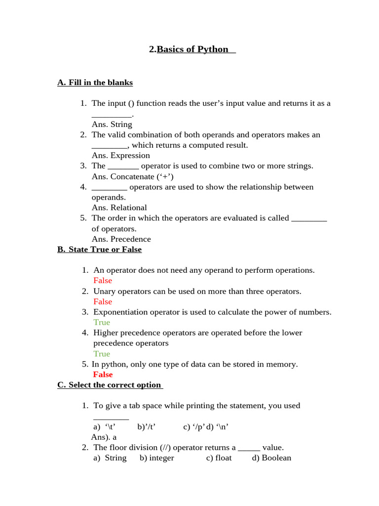 Ans). ‘/’ operator is used to divide the numbers and give an output in the