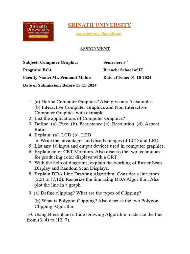 1. (a).Define Computer Graphics? Also give any 5 examples.
