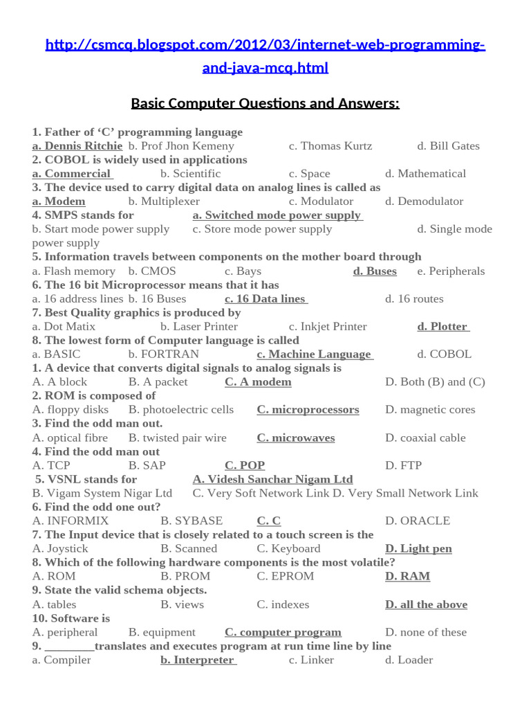 Basic Computer Questions and Answers: