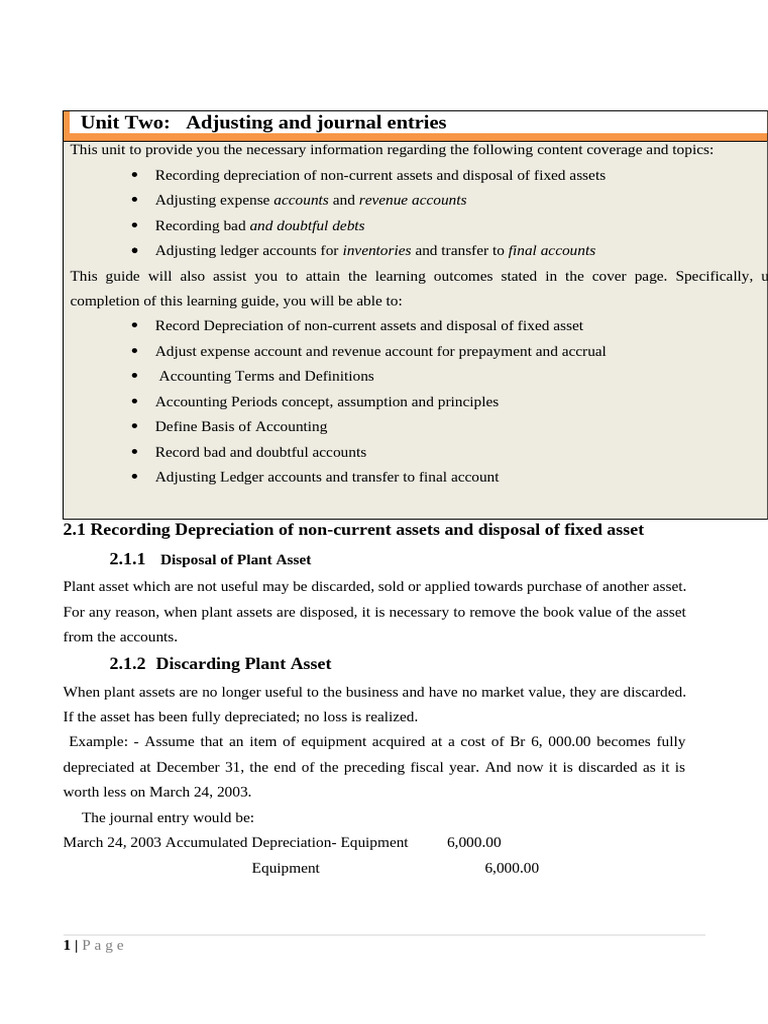 account by birr1,500 and the allowance for doubtful accounts by birr1,500. Thus, when ABC