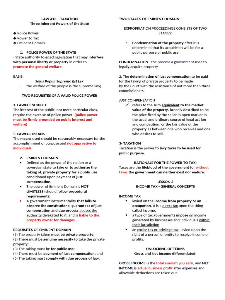 LAW 413 – TAXATION TWO STAGES OF EMINENT DOMAIN: