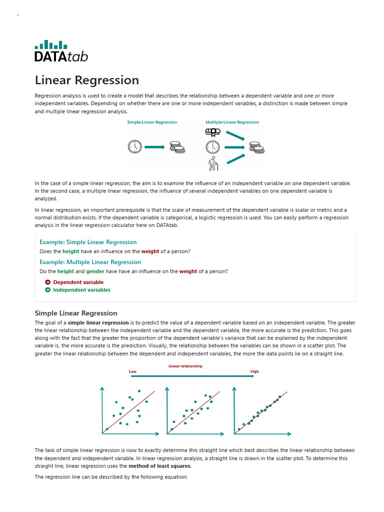 In the case of a simple linear regression, the aim is to examine the influence of an independent variable on one dependent variable.
