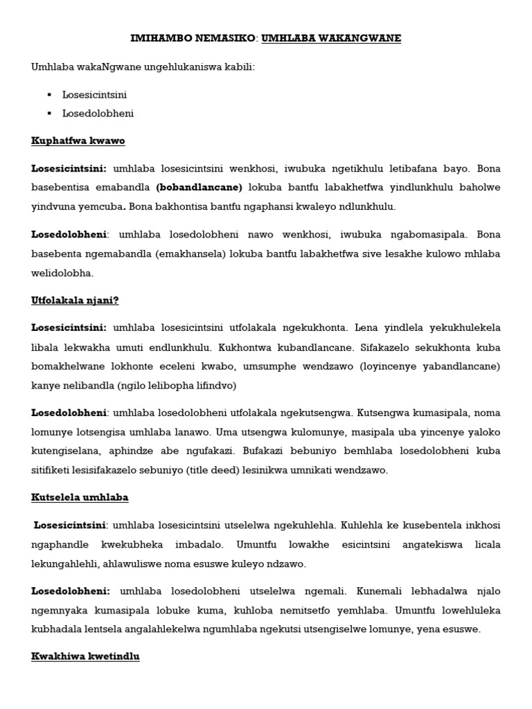Losedolobheni: umhlaba losedolobheni utfolakala ngekutsengwa. Kutsengwa kumasipala, noma