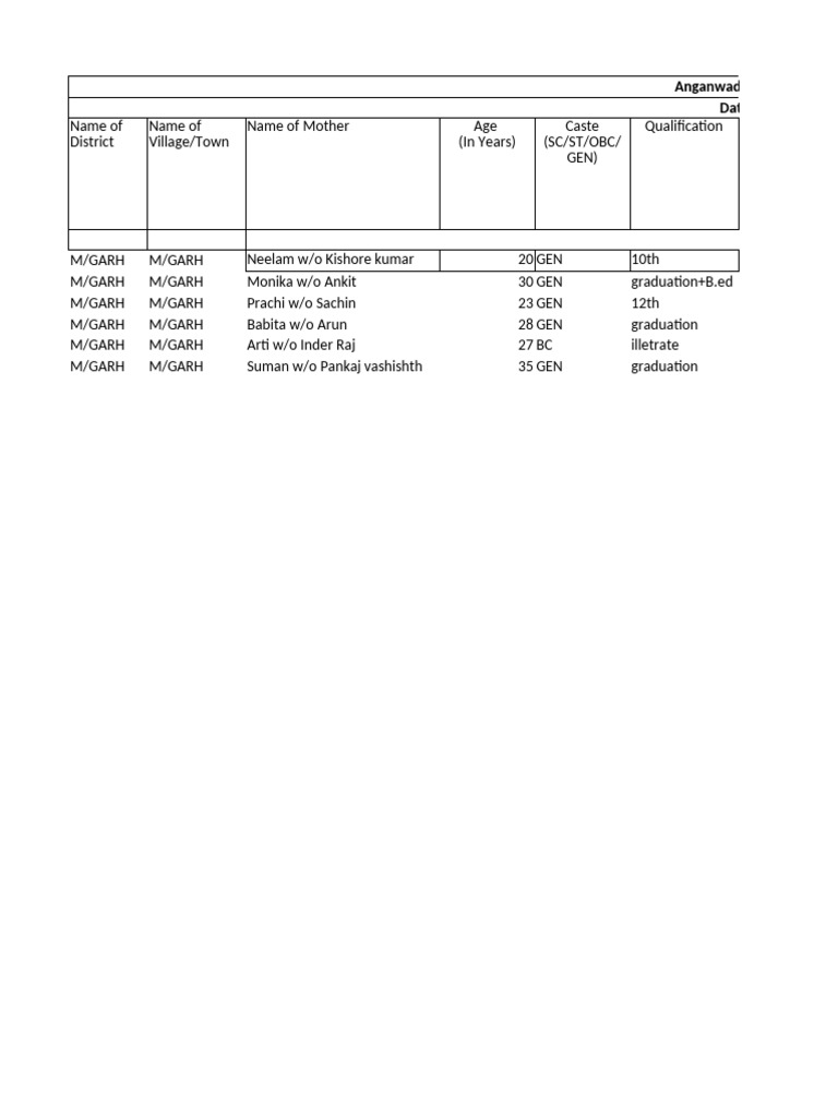 M/GARH M/GARH Neelam w/o Kishore kumar 20 GEN 10th