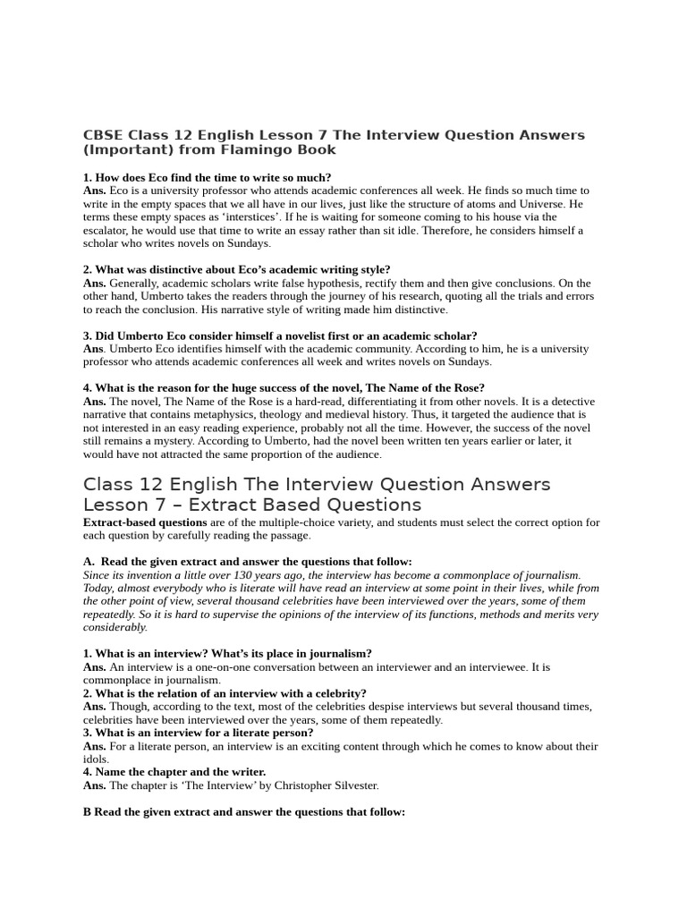 CBSE Class 12 English Lesson 7 The Interview Question Answers