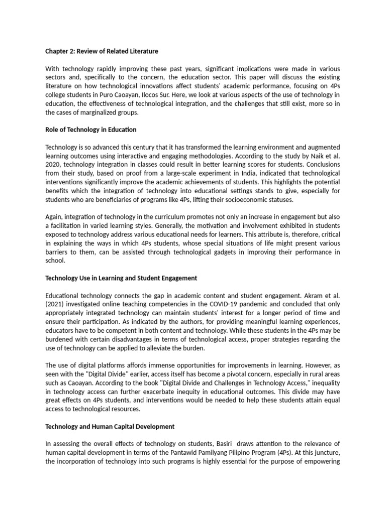educational performance among 4Ps college students in Puro, Caoayan, Ilocos Sur. While technology has
