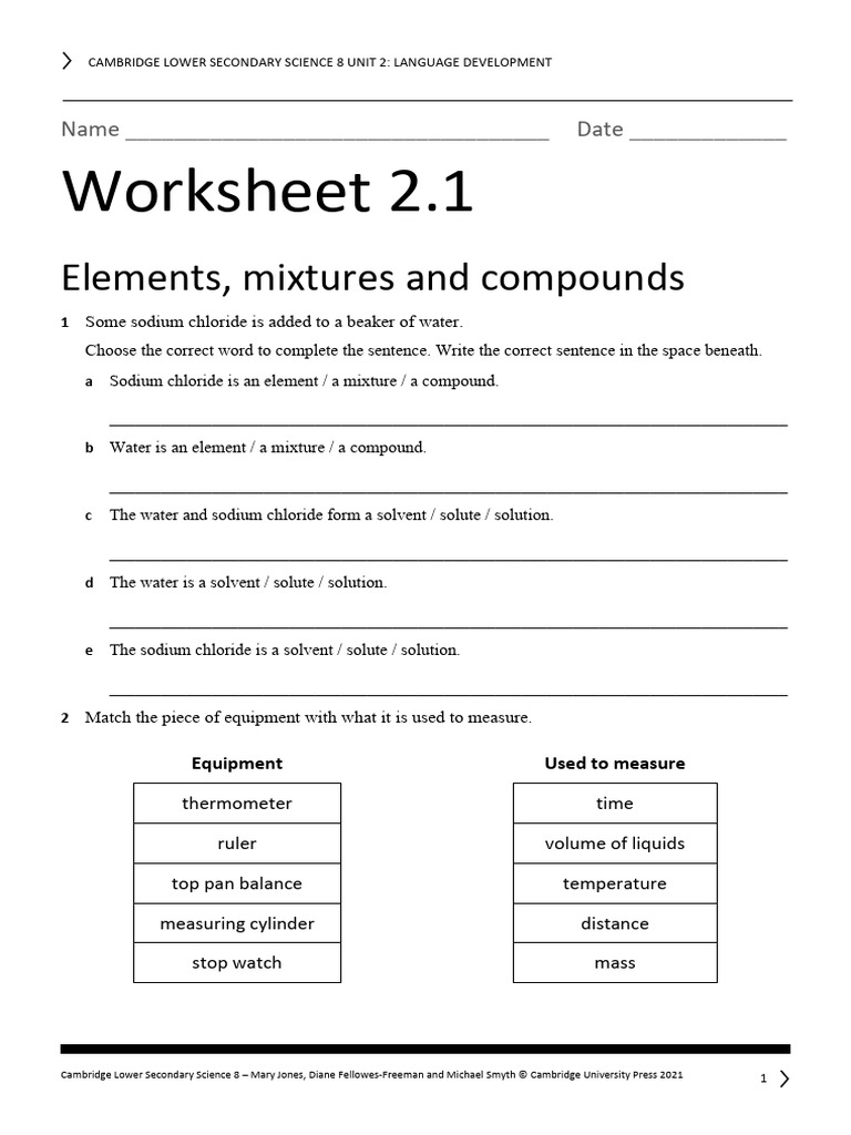 Cambridge Lower Secondary Science 8 – Mary Jones, Diane Fellowes-Freeman and Michael Smyth © Cambridge University Press 2021 1