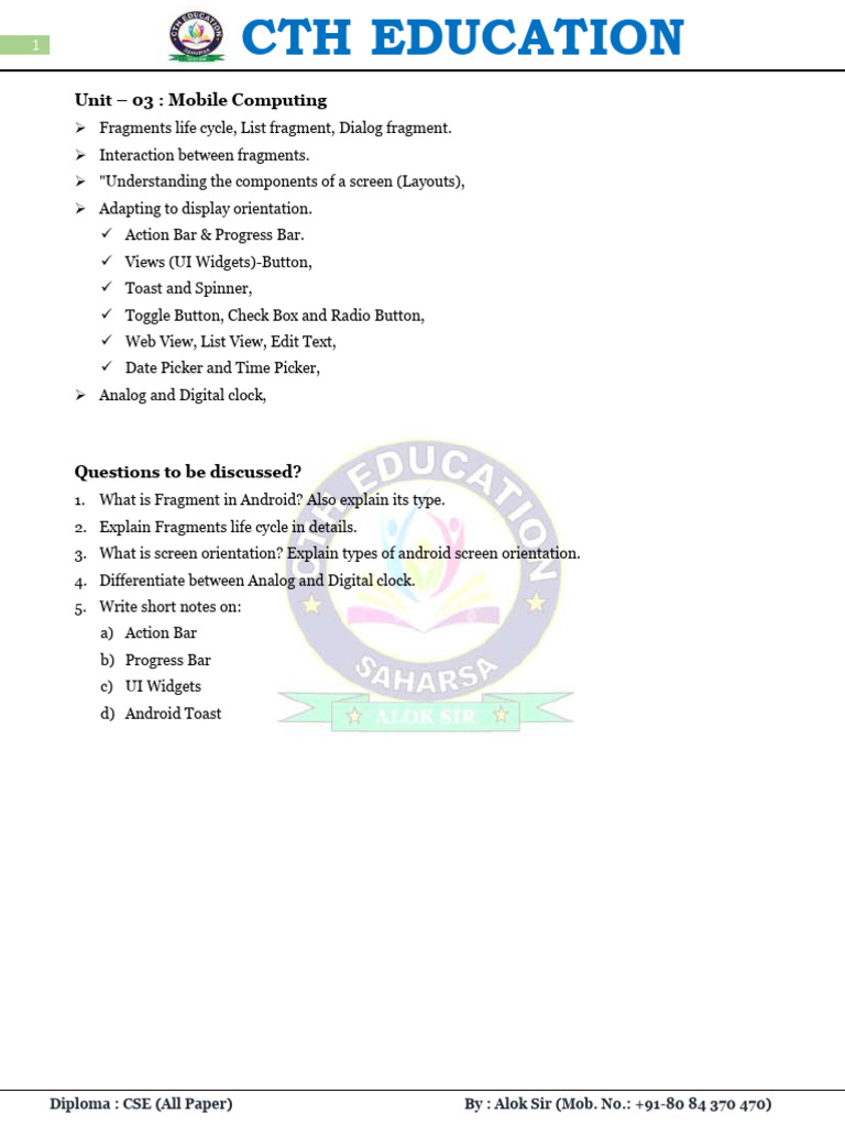 Diploma : CSE (All Paper) By : Alok Sir (Mob. No.: +91-80 84 370 470)