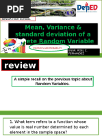 σ2 = ∑(x−μ)2 ∙ P(x )