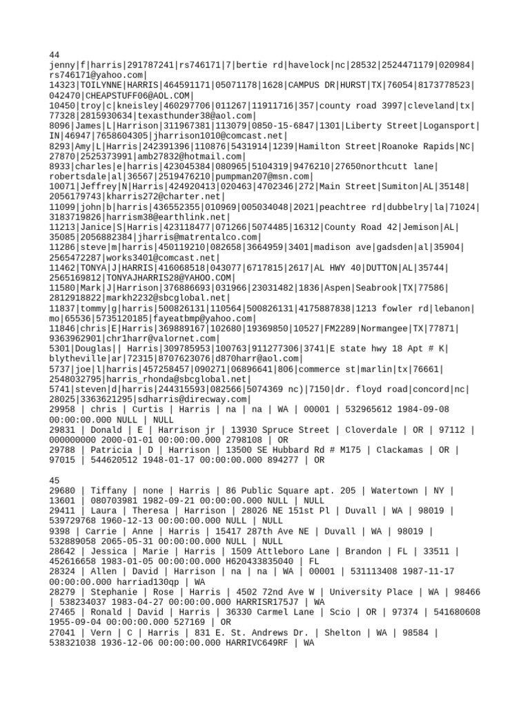 29958 | chris | Curtis | Harris | na | na | WA | 00001 | 532965612 1984-09-08