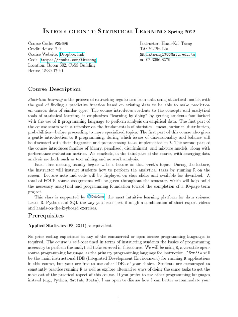 Course Website: Dropbox link B: hktseng1983@ntu.edu.tw