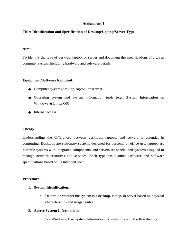 Title: Identification and Specification of Desktop/Laptop/Server Type.