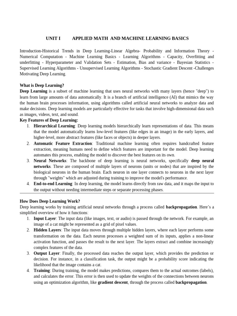 UNIT I APPLIED MATH AND MACHINE LEARNING BASICS