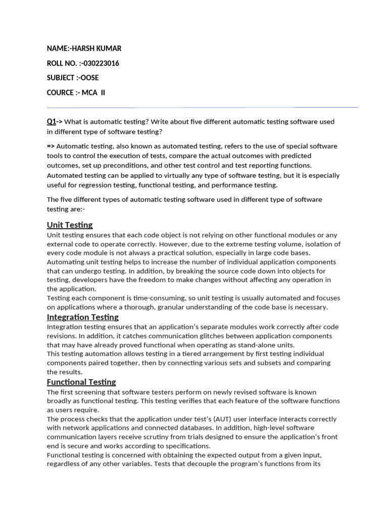 Q1-> What is automatic testing? Write about five different automatic testing software used