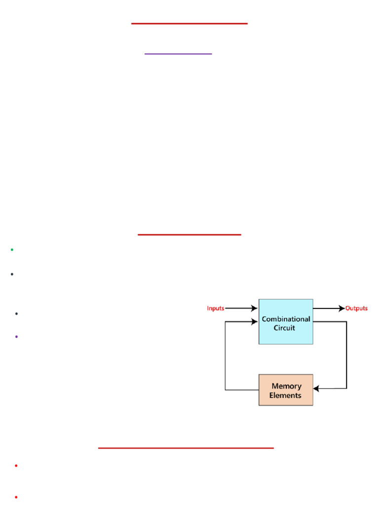 • Sequential circuits are digital circuits in which the output will depend not only on the