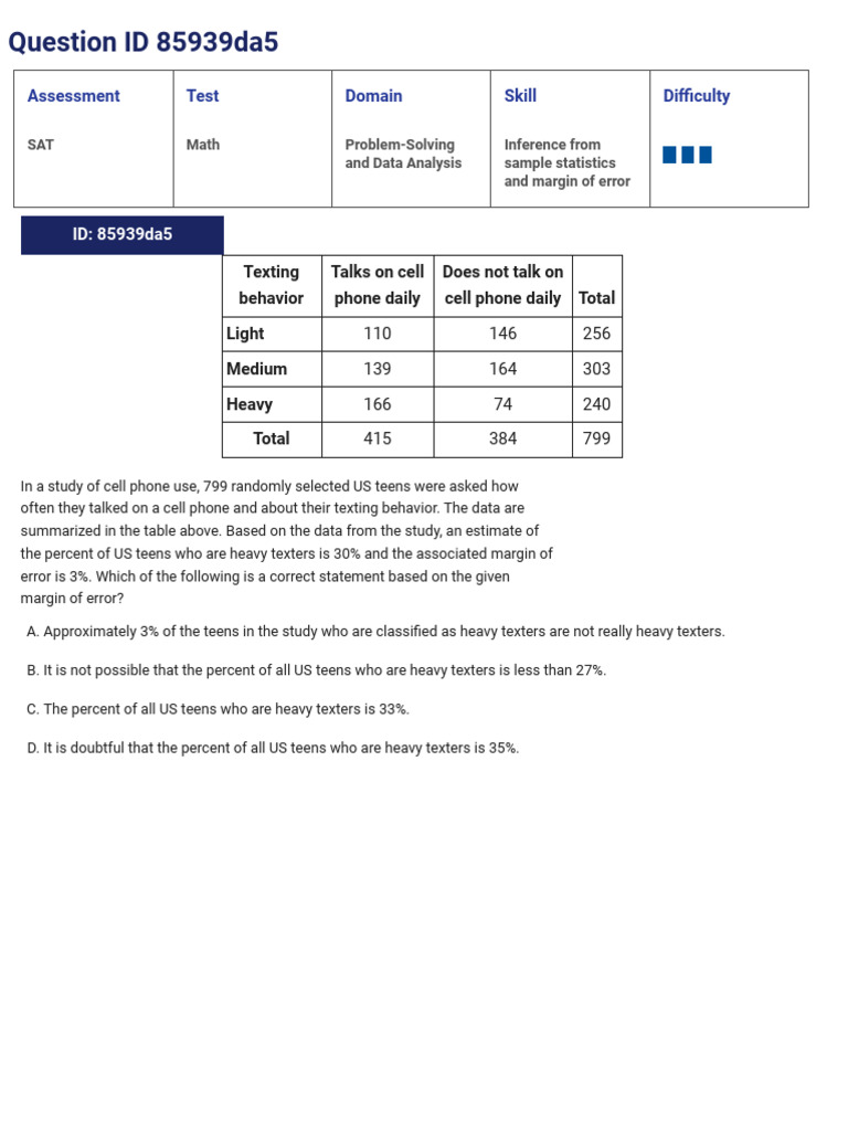 In a study of cell phone use, 799 randomly selected US teens were asked how