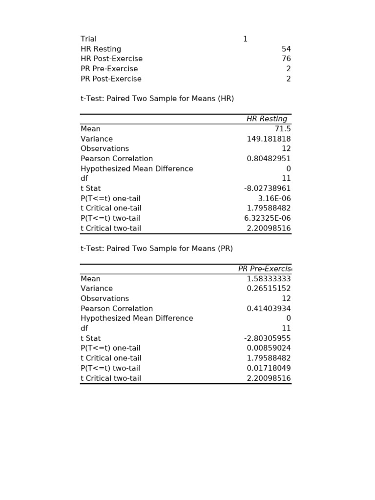 e raw heart rate and patellar reflex response data before and after participating in exercise