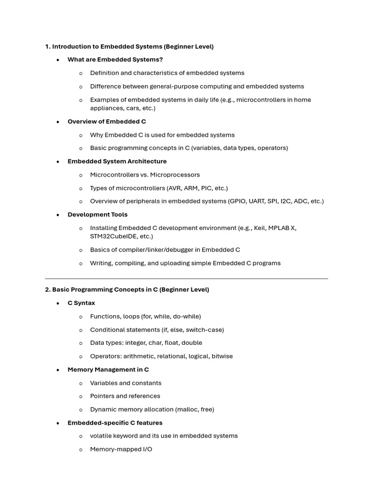 • Embedded C for ARM Microcontrollers (e.g., STM32, NXP)