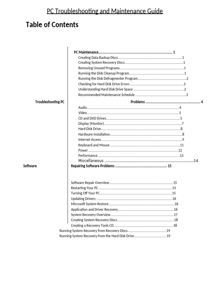 PC Maintenance............................................................................. 1